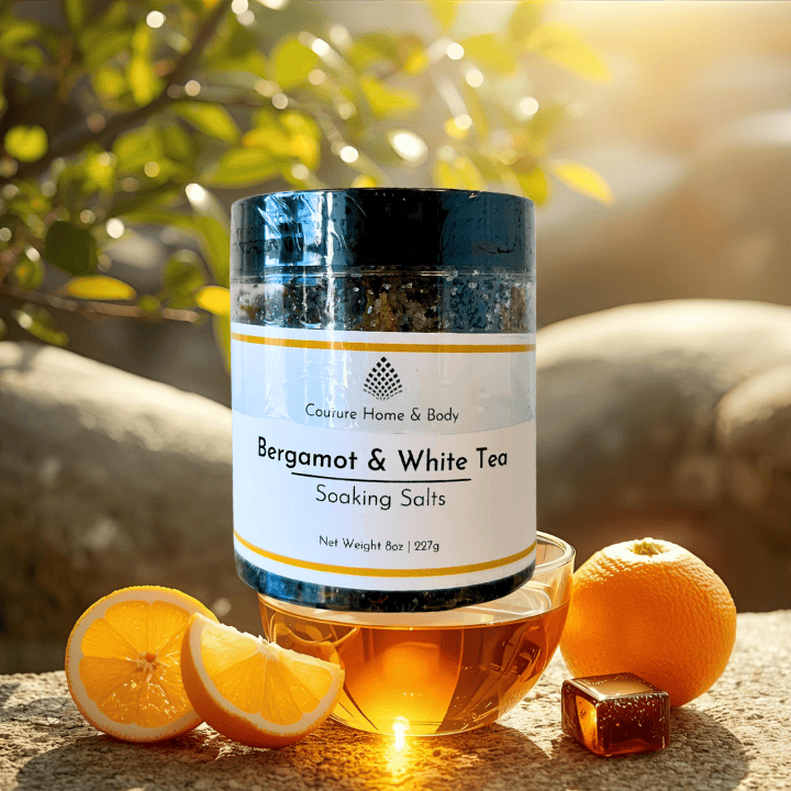 - Bergamot & White Tea: Bright Sicilian bergamot and delicate white tea create a fresh, uplifting soak that reawakens the spirit.