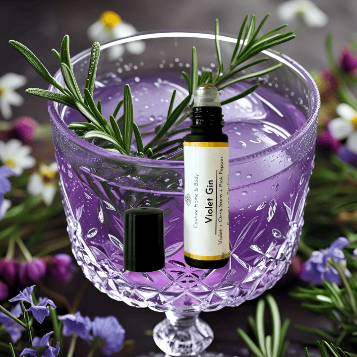 Violet Gin opens with a cool infusion of pink pepper and gin, softened by a gentle violet that blooms across the skin. As it settles, orris and moss add a soft, powdery calm—like clean linens in a garden breeze.
